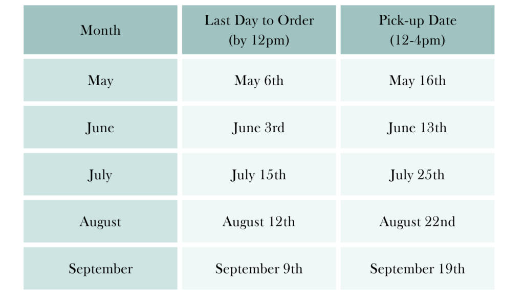 Once payment is received, a confirmation email will be sent with details regarding pick up time and location.
